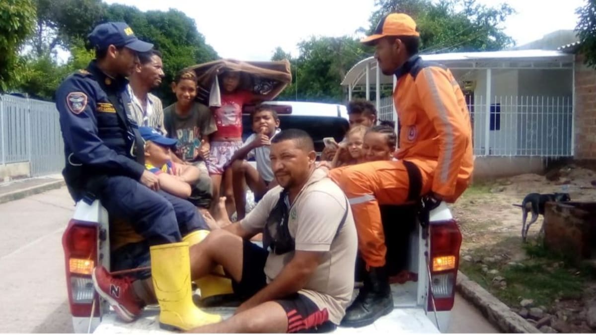 Once familias fueron evacuadas de sus viviendas por la creciente de los ríos debido a las fuertes lluvias en el municipio de Villanueva.