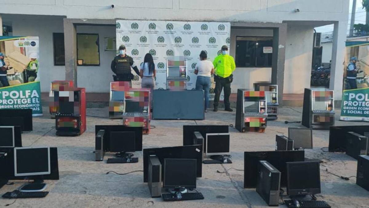 En la diligencia se logró la aprehensión de ocho máquinas traga monedas y 14 unidades de dispositivos como cuatro computadores, ocho televisores y dos impresoras, avaluados comercialmente por más de 39 millones de pesos, el cual fueron puestas a disposición de la Dirección de Impuestos y Aduanas Nacionales- DIAN, con el fin de que surta el proceso jurídico, teniendo en cuenta que estas mercancías se encuentran sin la documentación que acredite su legal introducción al territorio nacional.