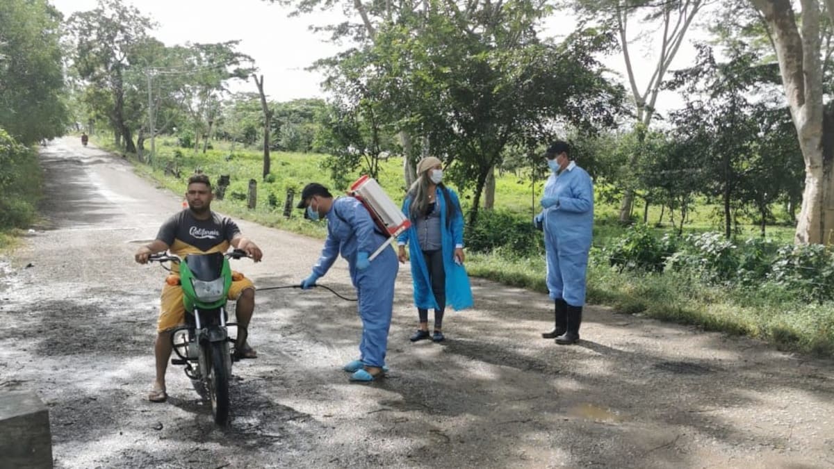 Por su parte, la alcaldesa de Los Palmitos, Diana Pérez Márquez, informó que uno de los puestos de limpieza y desinfección se sitúa frente a la sede educativa CDR, que es técnica agropecuaria, porque ese es un lugar que permite comunicación hacia 4 zonas: la urbana, una que va hacia el sector donde está la poza séptica, hacia el corregimiento Sabanas de Pedro y la vereda Membrillal.