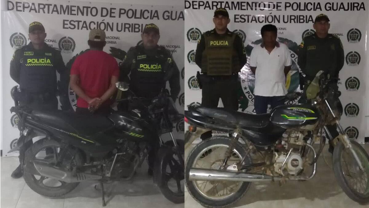 En el desarrollo de operativos contra el hurto de motocicletas, el departamento de Policía Guajira capturó a dos personas en Uribia por receptación y recuperó dos motos que figuraban como hurtadas.