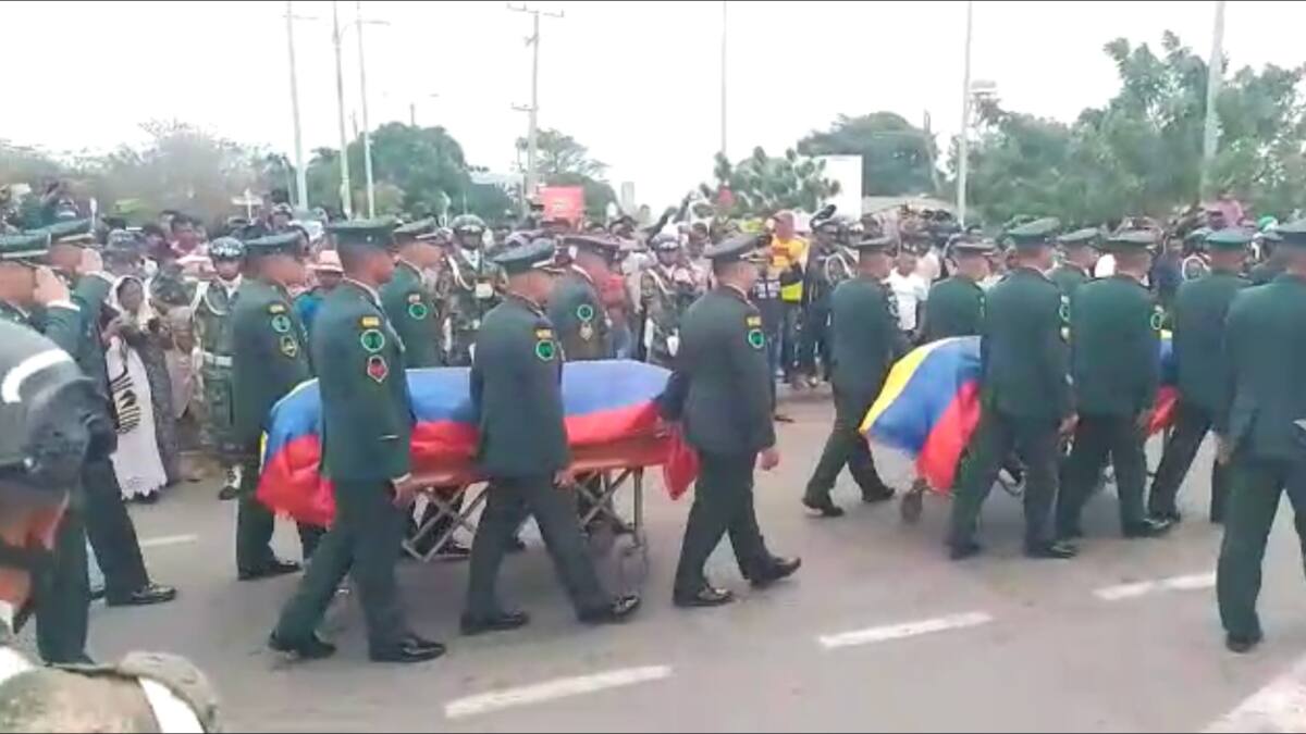 Este viernes, en medio de desgarradoras manifestaciones de profundo dolor, cerca de doscientos indígenas wayuu que llegaron de diferentes rancherías, recibieron en el aeropuerto José Prudencio Padilla de Riohacha, los cuerpos de cuatro soldados, Jaime Redondo Uriana, Herzel Fernández Bonivento, José David Pushaina Epieyú y Fabio Epinayu Ipuana, quienes fueron asesinados en una emboscada perpetrada por uno de los frentes de guerra del ELN en la zona del Catatumbo, en el departamento de Norte de Santander.