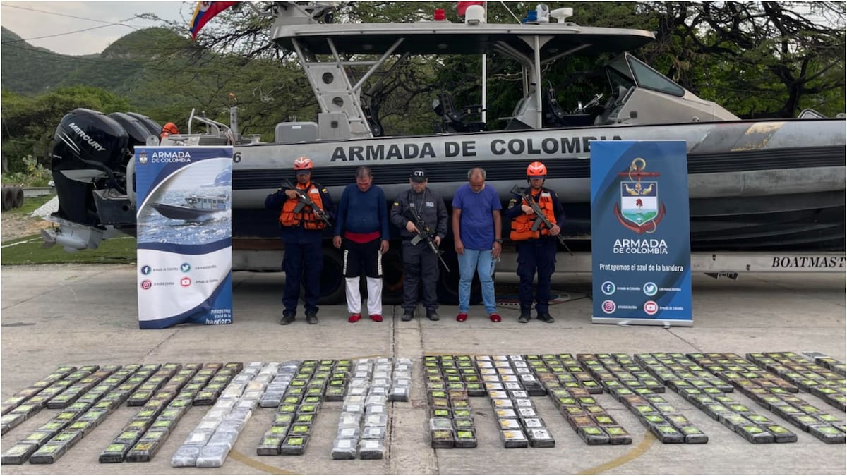 La Armada de Colombia logró incautar más de 331 kilogramos de clorhidrato de cocaína, que eran transportados por dos ciudadanos extranjeros, uno de nacionalidad venezolana y otro dominicano en una embarcación tipo go fast en el departamento de La Guajira.