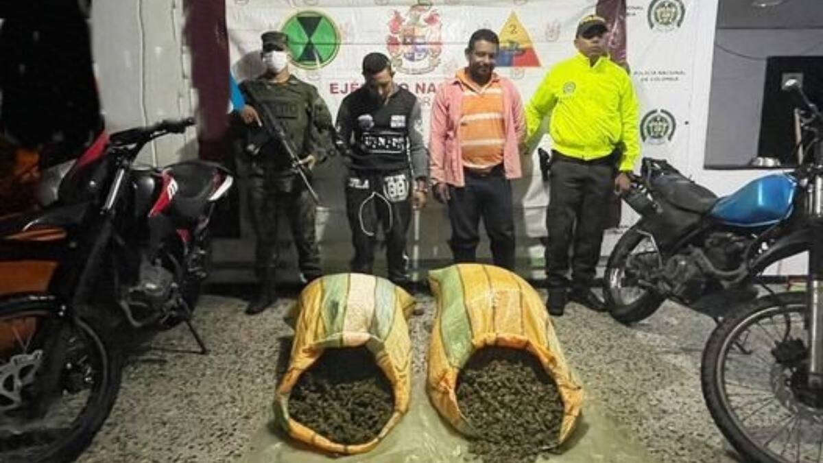 Un total de 51 kilogramos fue el peso que arrojaron dos costales de plástico blanco que estaban repletos de marihuana y que eran transportados por dos hombres que se desplazaban en motocicletas por la zona rural del municipio de Villanueva en La Guajira.