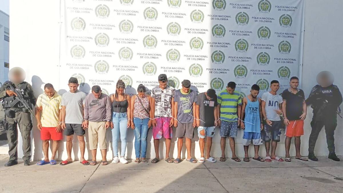 Las diligencias se desarrollaron tras la materialización de nueve órdenes de registro y allanamientos en el municipio de Maicao y zona rural del Distrito de Riohacha, donde fueron capturadas doce personas por los delitos de concierto para delinquir, homicidio agravado y extorsión.