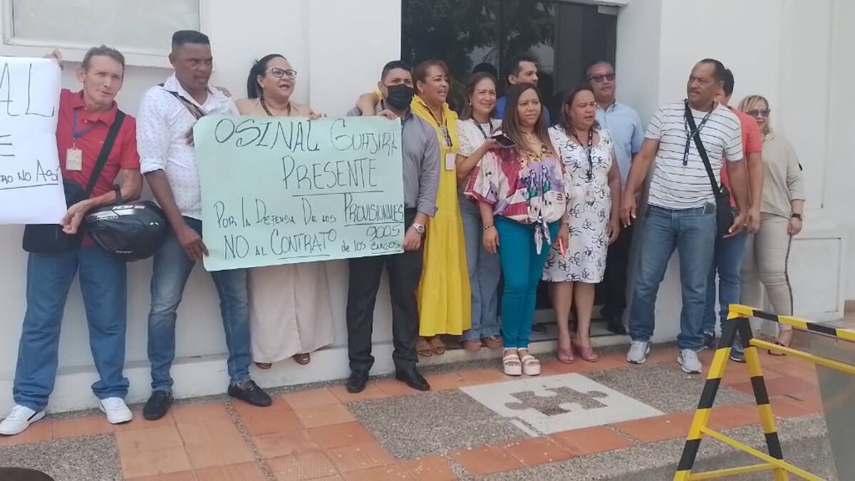 Cerca de 20 empleados de la Fiscalía General de la Nación adscritos a la Regional de La Guajira, participaron en un mitin para protestar contra la decisión que ha tomado la dirección nacional de desarrollar el concurso de méritos para que los demás colombianos tengan la posibilidad de acceder a cualquiera de los cargos que se oferten.