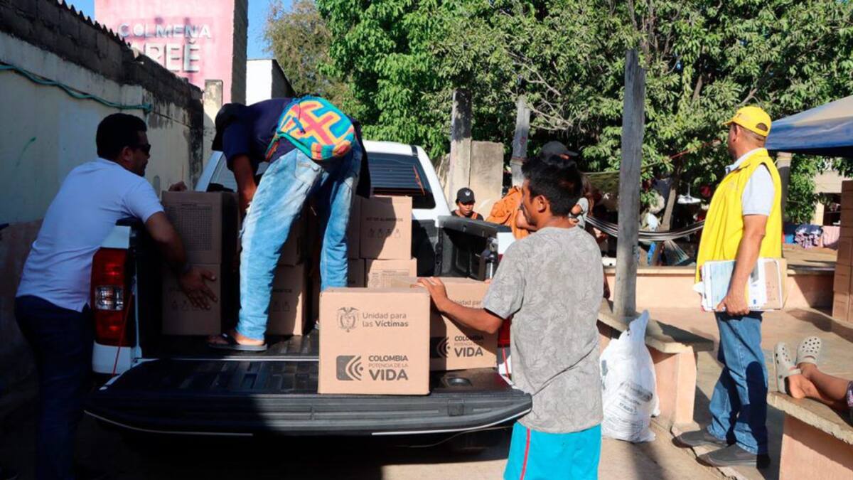 'Desde el inicio de la emergencia por desplazamiento masivo, la Unidad activó la ruta de atención que hoy se traduce en la segunda fase de esta ayuda humanitaria que consiste en la entrega de un kit de emergencia por familia que contiene los elementos de aseo y cocina, cobijas, juegos de cama, colchonetas, toldillos para hamaca, botiquines de primeros auxilios, así como alimentos para olla comunitaria' aseveró el director territorial de la Unidad en Cesar y Guajira, Mario José Ríos Oñate.