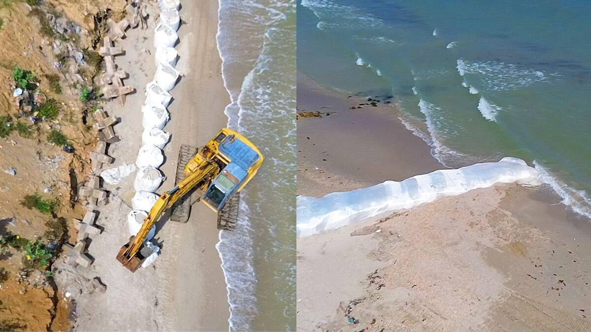 El plan de mitigación incluye la instalación de geocontenedores ensamblados in situ con tensores internos de geotextil de poliéster, rellenos con materiales locales y otros elementos ecológicos, como geobolsas, diseñadas para resistir los efectos corrosivos del entorno marino. Estas intervenciones no solo previenen la erosión costera, sino que también garantizan la seguridad y el bienestar de los habitantes de la zona, transformando la calidad de vida en el barrio José Antonio Galán.