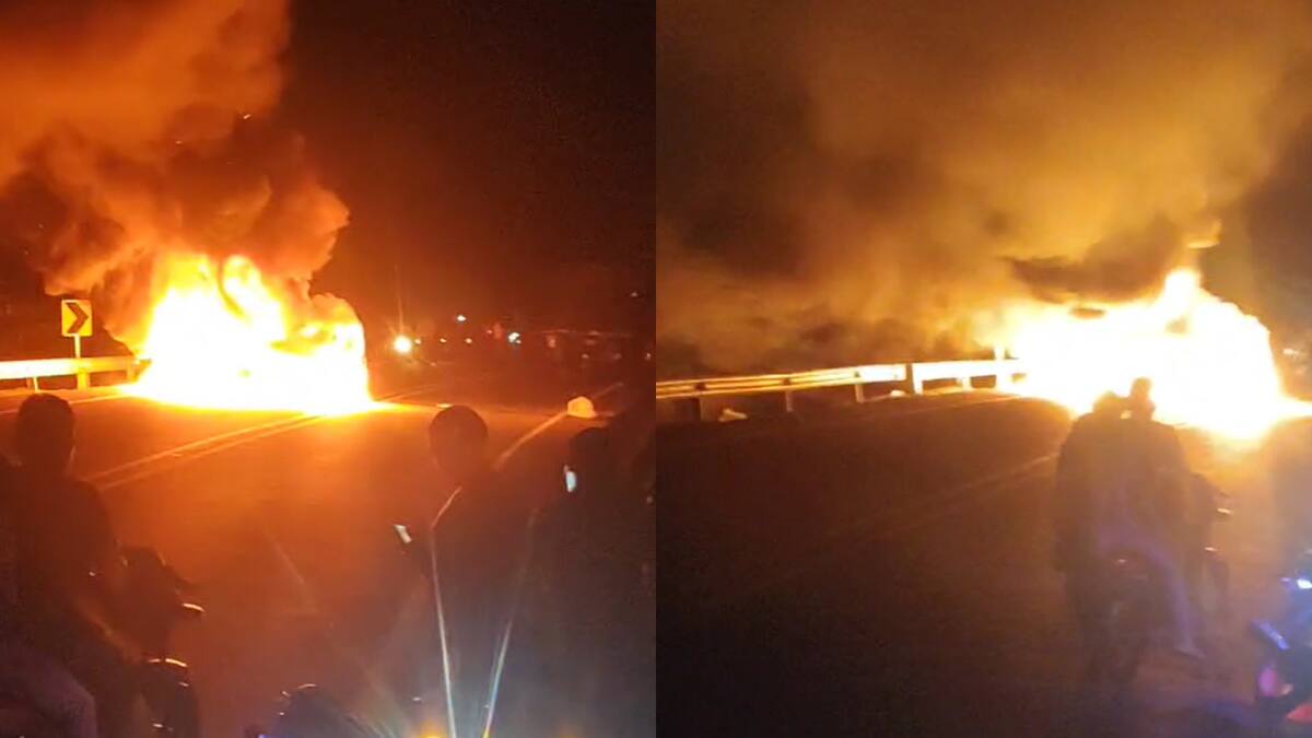 Según testigos, la colisión fue protagonizada por un camión y un carro particular. La persona lesionada fue identificada como Adalsimede Brito Redondo, de 50 años, quien iba maniobrando el último vehículo y por fortuna logró descender antes de que este ardiera en llamas.