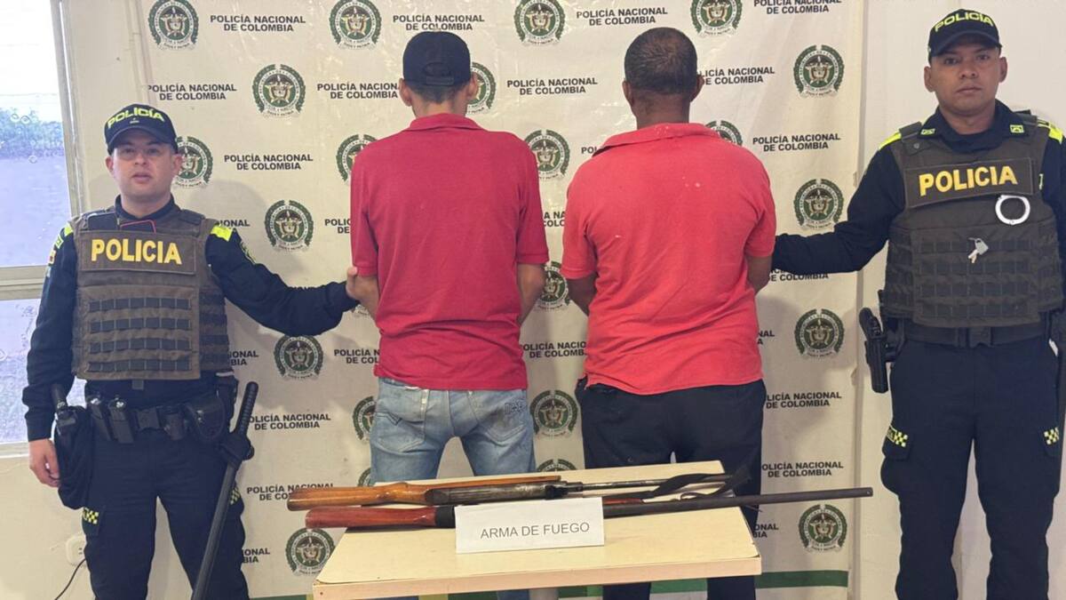 El hecho se registró a la altura de la entrada al corregimiento de Las Flores, jurisdicción del municipio de Villanueva, donde los agentes de Policía identificaron a dos hombres portando dos escopetas.