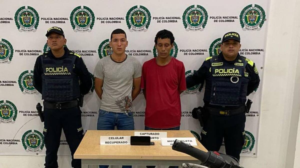 Los capturados fueron identificados como Dixon Junior Aranguren Linares, de 23 años, y Luis Fernando Tatis De La Hoz, de 27 años, quienes se movilizaban en una motocicleta marca Akt, línea Nkd, modelo 2015, de color rojo y sin placa.