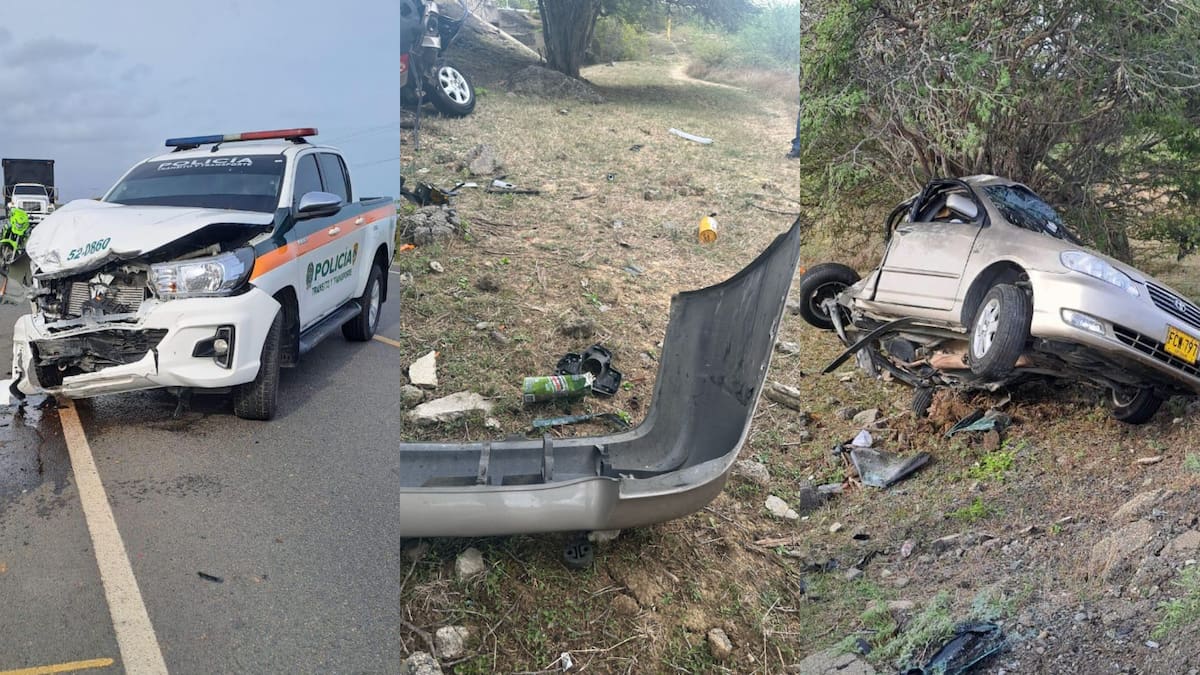 Durante este hecho, un rodante que se desplazaba en sentido Riohacha - Santa Marta colisionó primero contra la patrulla de uniformados de la Seccional de Tránsito y transporte y luego se salió de la vía.