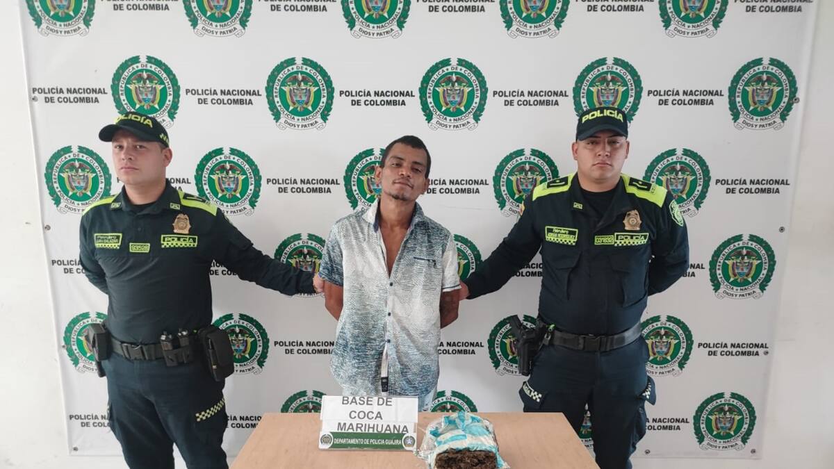 El capturado fue llevado hasta la Unidad de Reacción Inmediata y disposición a disposición de la Fiscalía de Riohacha, donde deberá responder por el delito de tráfico, fabricación o porte de estupefacientes.
