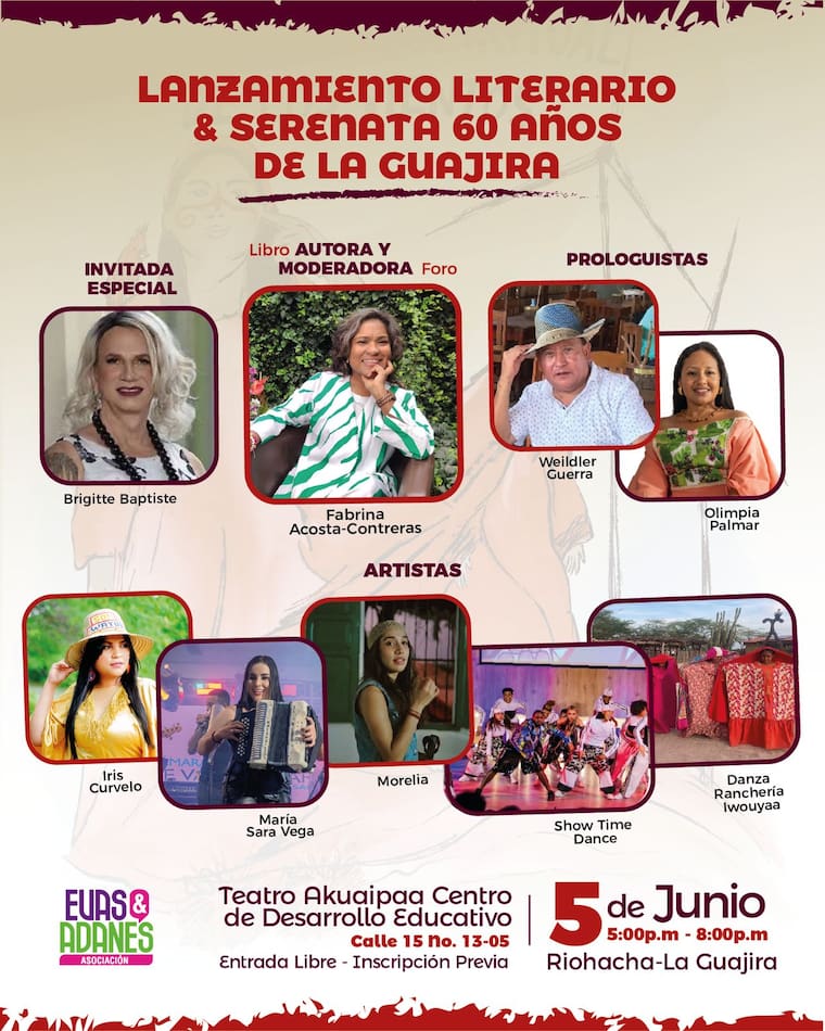 La programación iniciará a las 5:00 p. m. en el auditorio de Comfaguajira en Riohacha con el lanzamiento del libro ‘Mujeres y el valor espiritual de los vientos’. Esta obra, que será entregada gratuitamente a mujeres de las comunidades participantes, busca visibilizar saberes locales y promover procesos de sanación y reflexión colectiva.