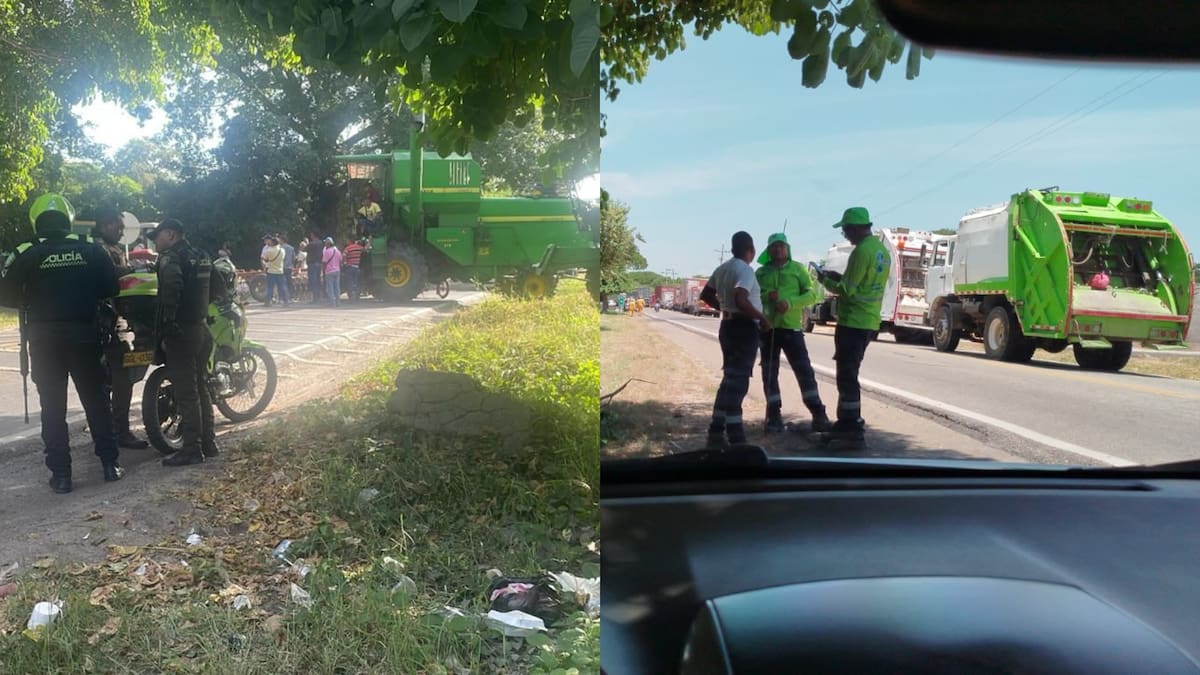 En el lugar que está cruzada un vehículo de maquinaria pesada, hace presencia personal del Ejército Nacional y Policía de carreteras, para velar que la manifestación se lleve de manera pacífica y dentro de los marcos legales.