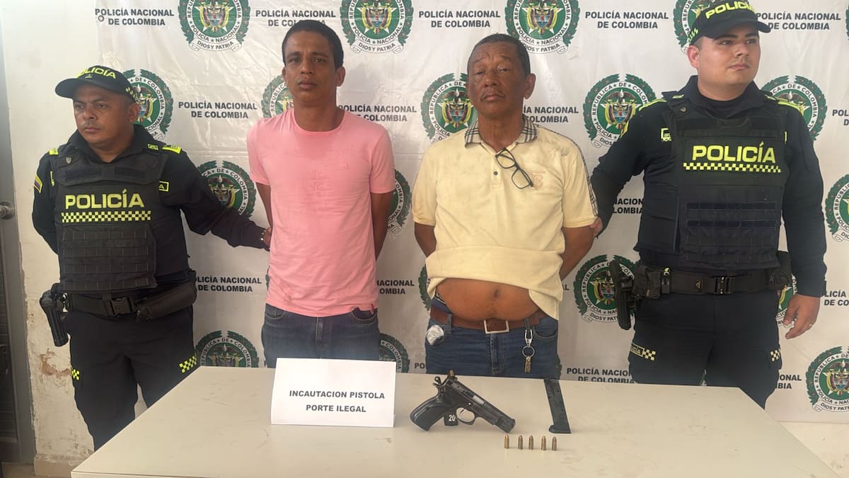 Estos fueron identificados como Euler David Bolívar Brito, de 32 años, y Fabio Enrique Bolívar Brito, de 65 años, quienes fueron puestos a disposición de la autoridad competente por el delito de fabricación, tráfico, porte o tenencia de armas de fuego, accesorios, partes o municiones.