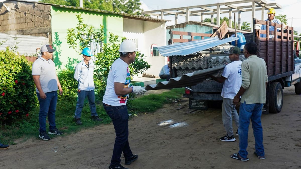 Durante la jornada, se distribuyeron láminas de zinc y de eternit, brindando una respuesta oportuna para mitigar las afectaciones y permitir que las familias puedan reconstruir sus hogares.