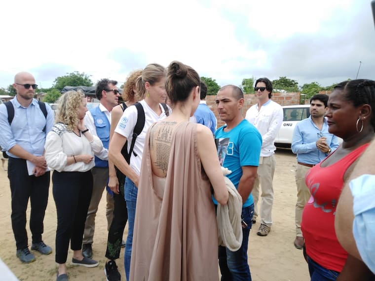 Durante su estadía en La Guajira, la Alta Comisionada Adjunta del ACNUR Kelly Clements y la enviada especial de la Agencia de la ONU para los Refugiados, Angelina Jolie, visitaron el asentamiento Brisas del Norte, donde vive un gran número de migrantes venezolanos. Allí dialogaron con algunos de ellos, así como con retornados colombianos que viven en esta zona del distrito de Riohacha.