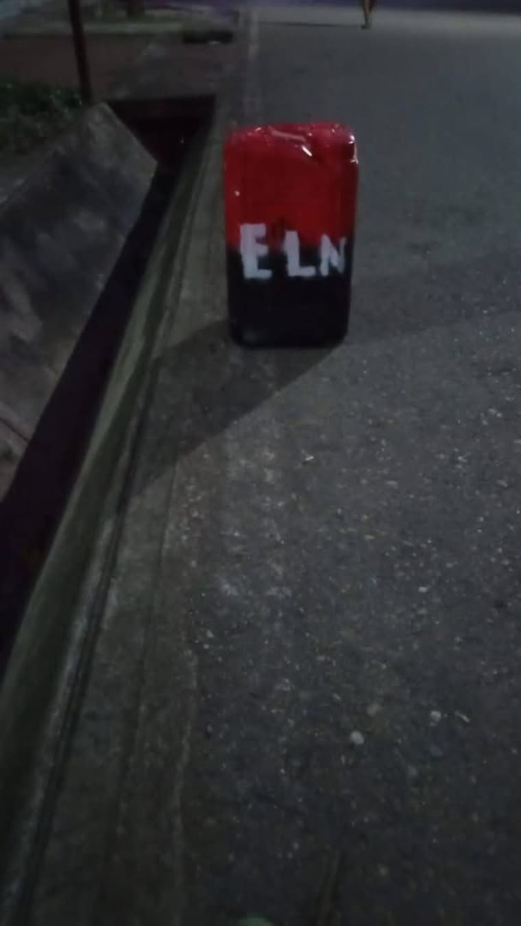 En el corregimiento de Los Remedios, área rural de Albania, la comunidad reportó el hallazgo de un cilindro con el color identificativo y pintado con las letras ELN, de igual manera, las misma siglas pintadas en la carretera.