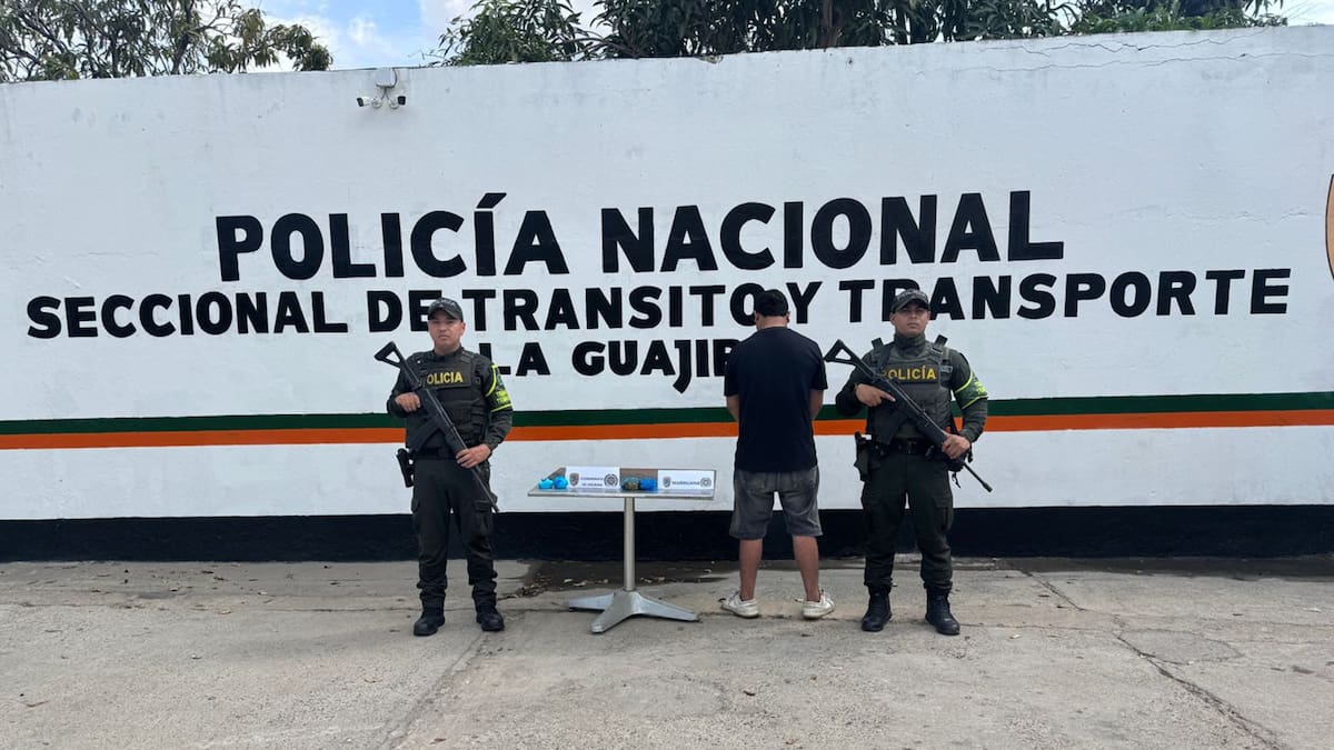 A la altura del kilómetro 24 de la vía Riohacha-Santa Marta, uniformados de la Seccional de Tránsito y Transporte de la Policía, capturaron a un ciudadano por porte de droga en jurisdicción del departamento de La Guajira.