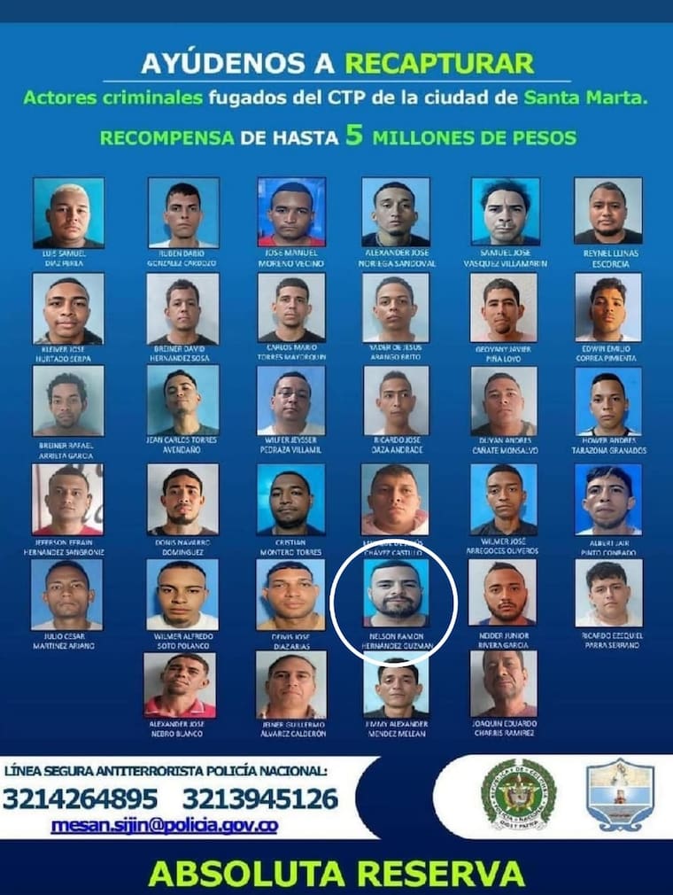 De acuerdo con las verificaciones realizadas por Policía Judicial, este ciudadano figuraba como indiciado por el delito de fuga de presos, luego de haberse fugado el pasado 16 de marzo de 2026 de un Centro Transitorio de Reclusión, en Santa Marta, Magdalena, donde permanecía con medida de detención intramural por el delito de extorsión agravada en grado de tentativa.