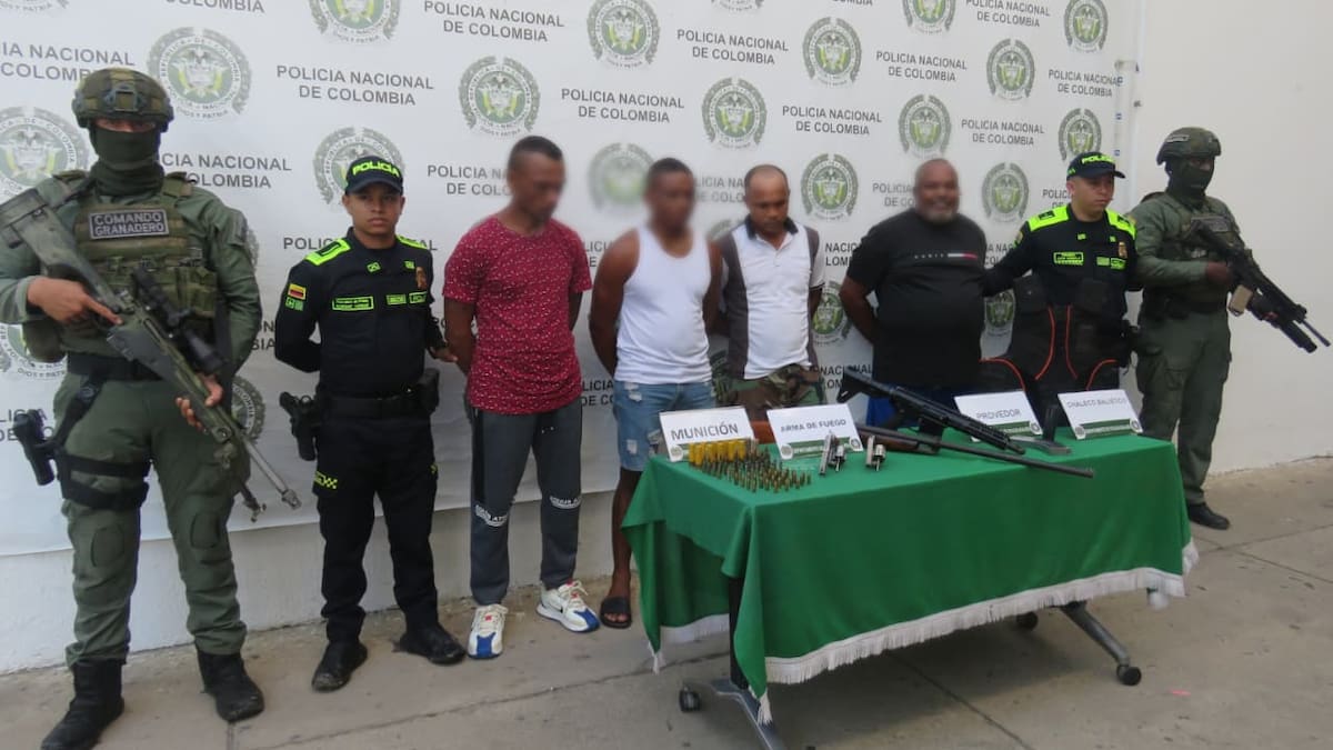 Uniformados de la Policía Nacional en coordinación con tropas del Batallón de Infantería N.° 6, orgánico de la Décima Brigada del Ejército, lograron la captura de cuatro sujetos, que serían presuntos integrantes del grupo delincuencial organizado ‘Los JJ’, en el departamento de La Guajira.