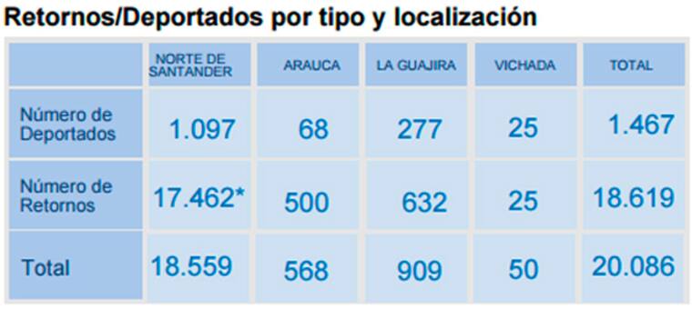 La cifra fue entregada por la Oficina de Naciones Unidas para la Coordinación de Asuntos Humanitarios (OCHA) que cifró el martes en 1.467 los expulsados de Venezuela y en 18.619 los que han abandonado el vecino país antes de correr la misma suerte.