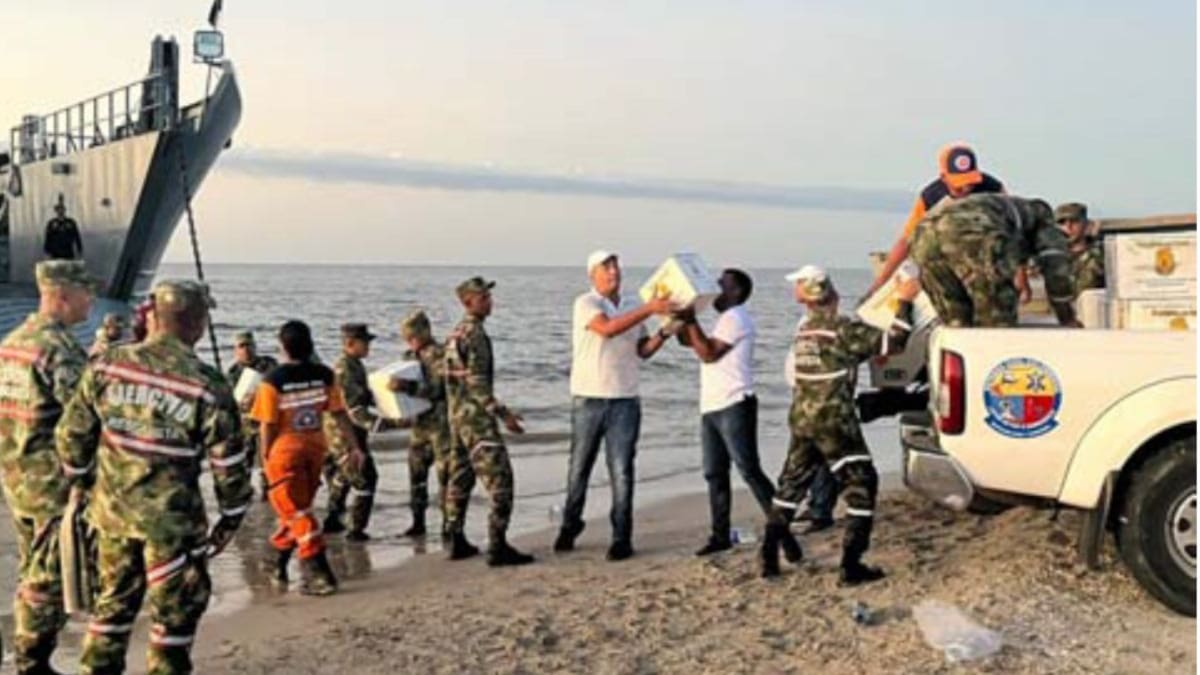 Con ayudas humanitarias fue cargado el Buque BDA ARC Golfo de Urabá, en las playas del Distrito de Riohacha, el cual será llevado a las comunidades de Bahía Honda, Puerto Estrella y Puerto López, en la Alta Guajira.