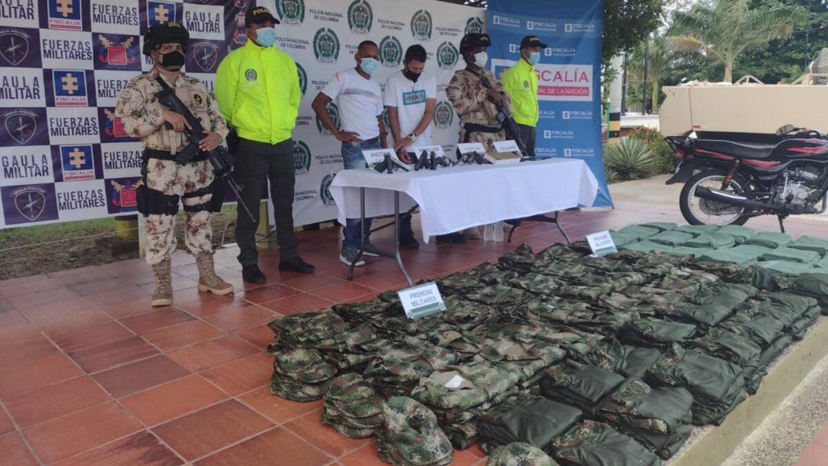 El comandante de la Policía en La Guajira, coronel Wharlinton Gualdrón, indicó que esta investigación por la captura de estos dos hombres y el material que se les incautó continúa, debido a que es importante conocer el destino del material de intendencia y las municiones.