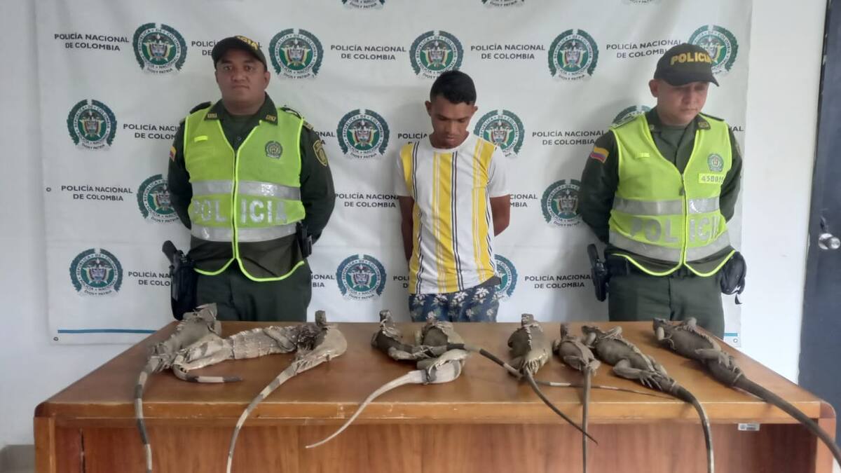 La tarde de este viernes 10 de febrero fue capturado en el municipio de Fonseca, La Guajira, un ciudadano en cuyo poder fueron halladas nueve iguanas, aún con vida. El hombre, quien transportaba a los reptiles atados, presuntamente para comercializarlos, fue dejado a la disposición de la Justicia Ordinaria para que se dé inicio al respectivo proceso penal.