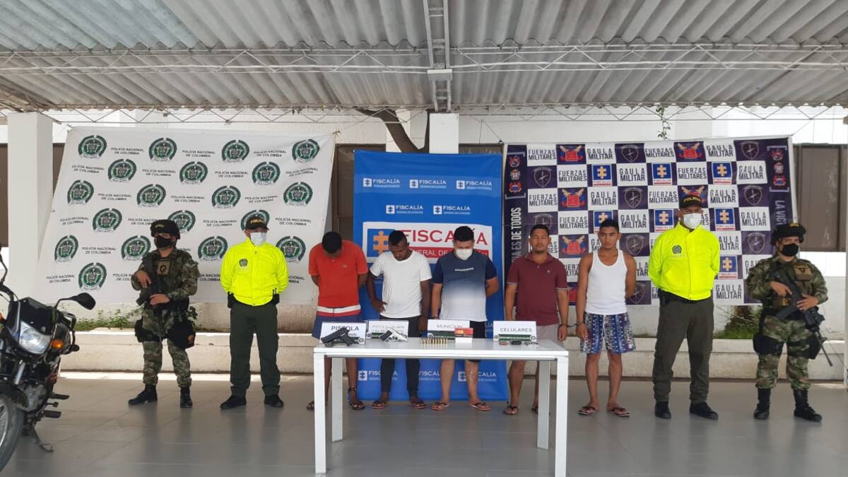 Los voceros de las instituciones oficiales dijeron que los allanamientos se hicieron en Riohacha en el barrio La Majayura, donde lograron la captura de Luis Eduardo Jaime Mozo, David Alberto Montes Dixon, alias Javier, Camilo José Acosta Galindo, Federico López Cuadrado, alías El Fede, y Pedro José Miel Carrillo, alías José, a quienes les incautaron dos pistolas, dos proveedores, 67 cartuchos de diferentes calibre, 59 gramos de marihuana y cuatro celulares.