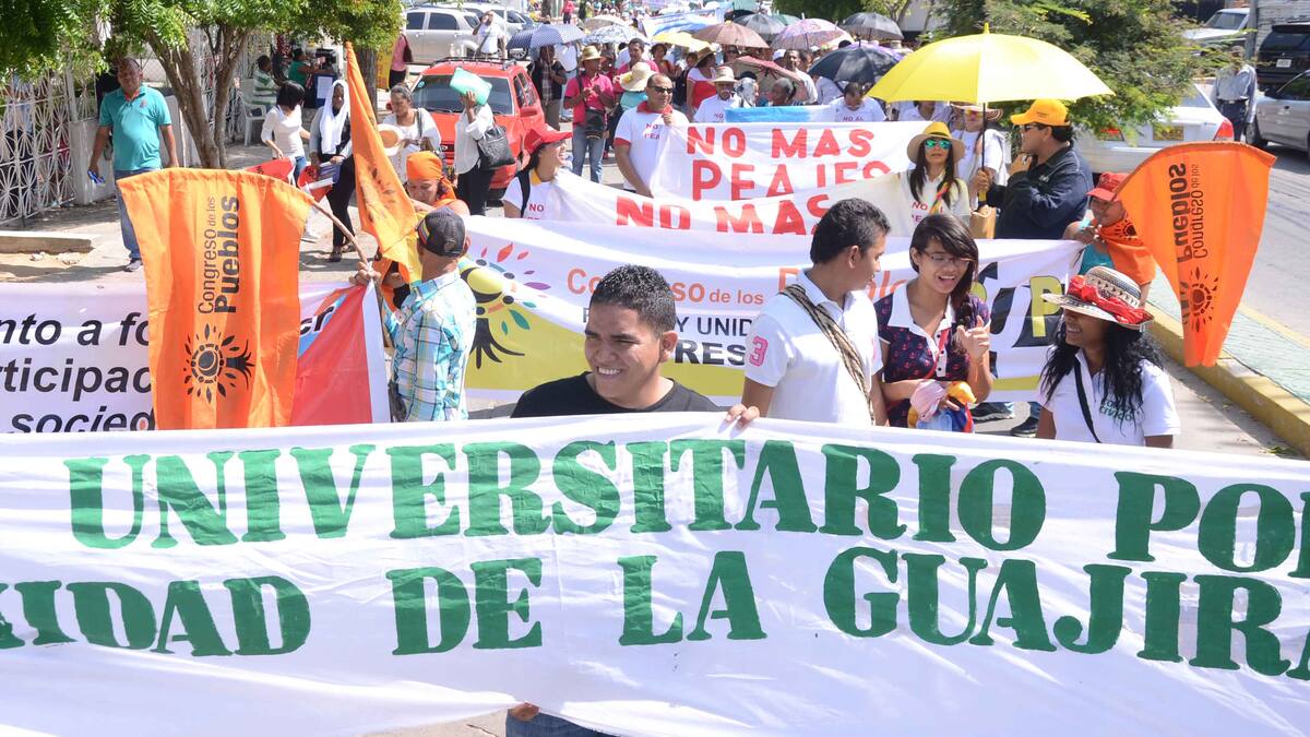 También reclamaron durante la marcha la nacionalización de la Universidad de La Guajira, que no impongan nuevos peajes en las vías del departamento, que construyan el acueducto regional y se cree la empresa departamental de servicios públicos de carácter estatal.