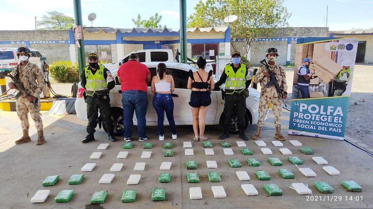 La actividad de control de la Policía de Tránsito y Transporte del departamento de La Guajira arrojó nuevos resultados positivos en la lucha contra el tráfico de estupefacientes, esta vez con el decomiso de más de 50 kilogramos de clorhidrato de cocaína que eran transportados por la carretera Troncal del Caribe, al parecer, con destino a Maicao.