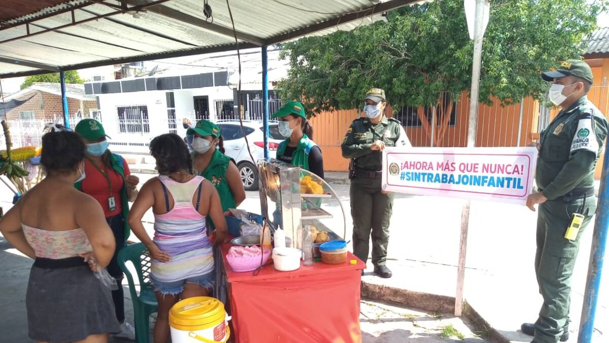 Por las calles céntricas y zonas residenciales de Sincelejo se realizan las campañas de concientización y prevención al trabajo infantil.