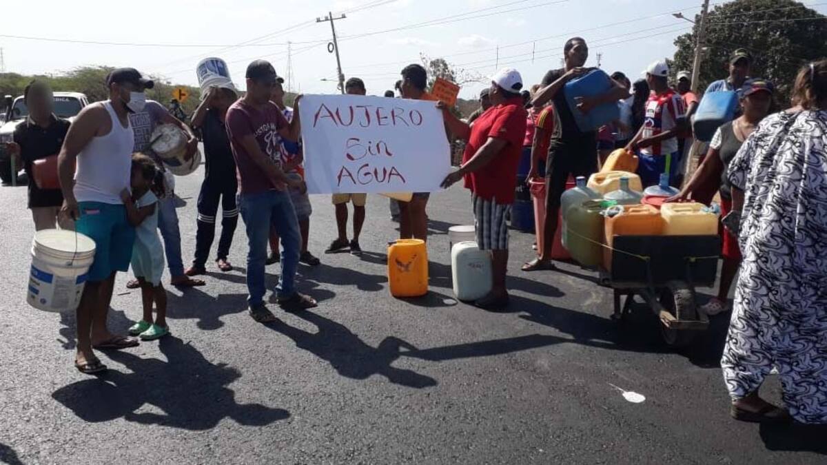 En un acto de desesperación por la falta de agua, habitantes de la comunidad indígena Aujero, ubicada en el kilómetro 4 de la vía Riohacha – Maicao, tomaron la decisión de bloquear la carretera para exigirles a las autoridades una solución definitiva a la crisis que están padeciendo.