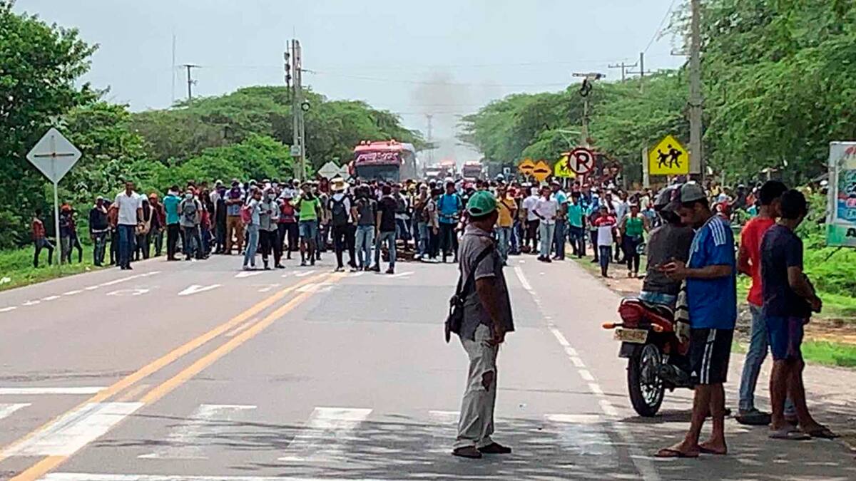 Los estudiantes de la Universidad de La Guajira mantienen bloqueada la vía entre Riohacha y Maicao en protesta por la deuda que tiene la administración departamental con la alma mater y que asciende a $92 mil millones.