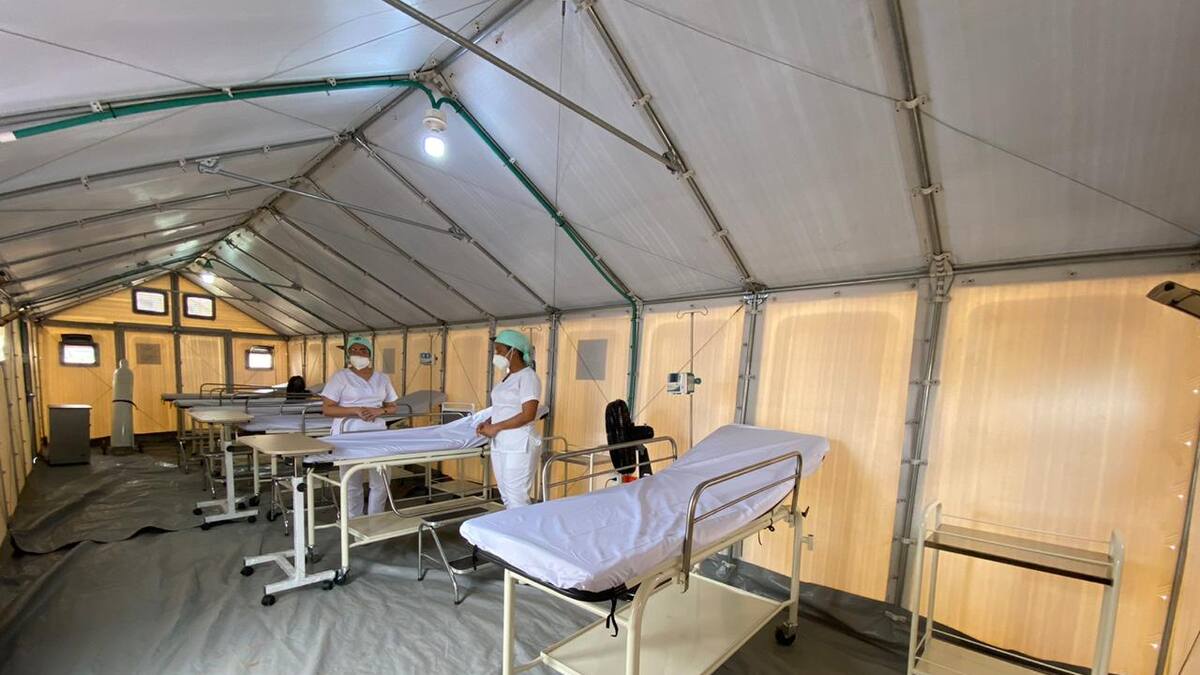 Agregó que en esta zona tipo campamento, se implementó un triage diferencial respiratorio en tres de estas carpas, con dos camillas para aislados. Las 11 restantes tienen capacidad para albergar seis módulos con camillas que cuentan con sus elementos esenciales. También cuentan con monitores y bombas de infusión por cada carpa.
