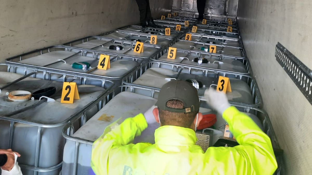 Según la Policía, el estupefaciente era transportado en un vehículo tipo tractocamión por el kilómetro 96, de la vía que conduce del sector de Paradero con el municipio de Maicao, el cual llevaba 20 contenedores plásticos tipo IBC con capacidad para mil litros cada uno y camuflados con productos químicos industriales.