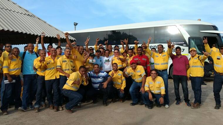 Luis Gómez Pimienta con un grupo de trabajadores que apoyan su candidatura.