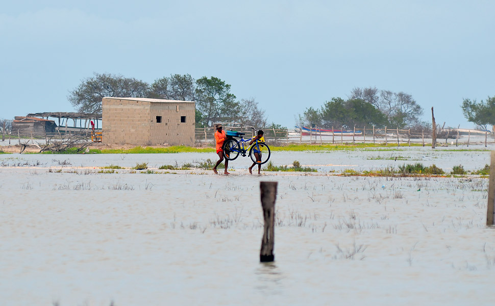 Norberto Gómez, en la Alta Guajira, con dos habitantes de la zona.