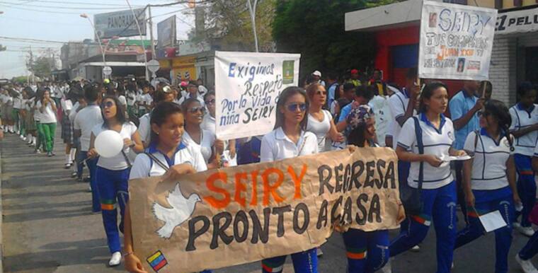 'Hoy estamos acompañando a nuestra compañera para solidarizarnos con ella y a las personas que tienen a Seiry les pedimos que la regresen a su hogar que es donde debe estar', manifestó.