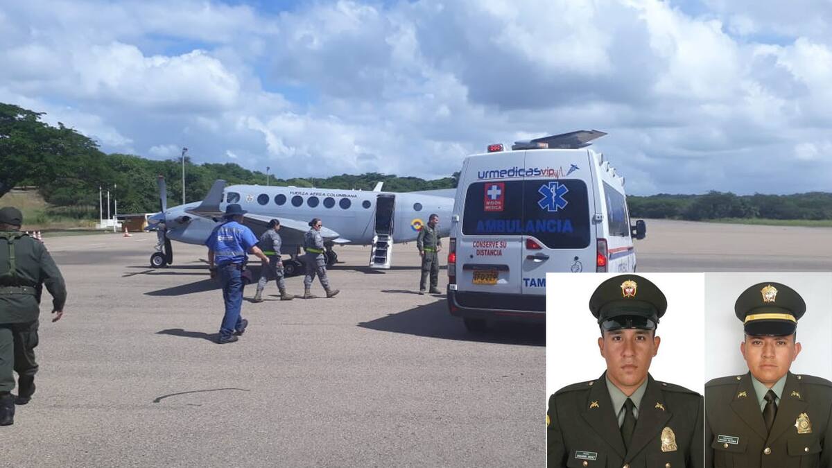 Explicó que el subintendente Geovani Palomino Quibalo fue trasladado a Bogotá en un avión ambulancia, ya que sufrió quemaduras de segundo grado en el 80% de su cuerpo y tuvo problemas respiratorios, por lo que debió permanecer durante algún tiempo en una unidad de cuidados intensivos, mientras que el patrullero Jindarwin Jiménez Badillo se encuentra en la capital del Atlántico, donde se recupera en un centro asistencial.