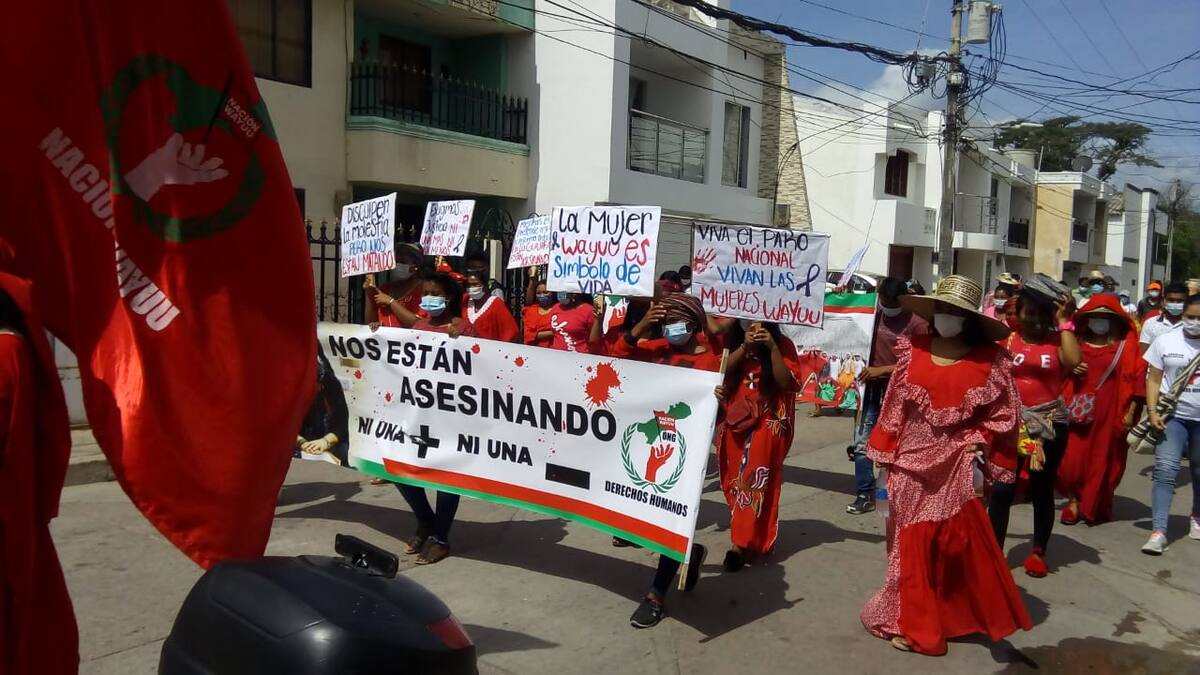 Ataviadas de rojo, el color de la fortaleza espiritual, marcharon las mujeres wayuu para rechazar el asesinato en La Guajira de dos madres y una menor de edad pertenecientes a esta etnia.