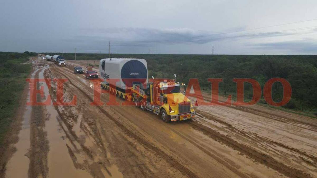 Así lo evidencian varias fotografías en los que se aprecian los inmensos camiones que en los que se transportan las hélices y los aerogeneradores que arribaron el pasado a este departamento en el mes de junio.