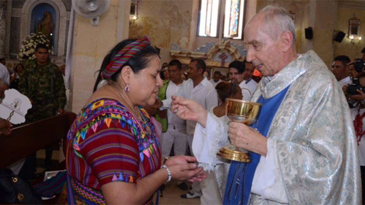 La exsenadora Córdoba; la Nobel Menchú; la gobernadora Pinto y el alcalde Velásquez, en la homilía.