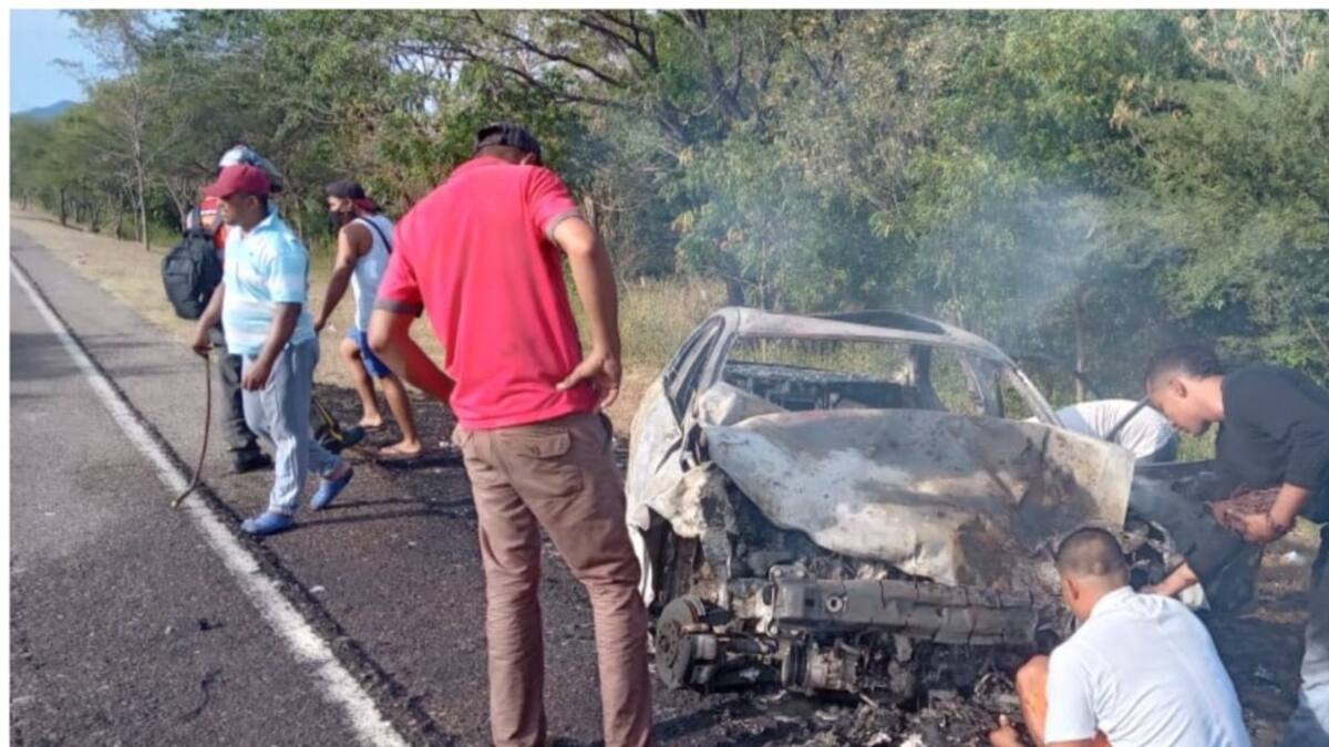 El vehículo involucrado en el accidente en el que murieron cinco personas de una misma familia fue incendiado por desconocidos, la mañana de este lunes.