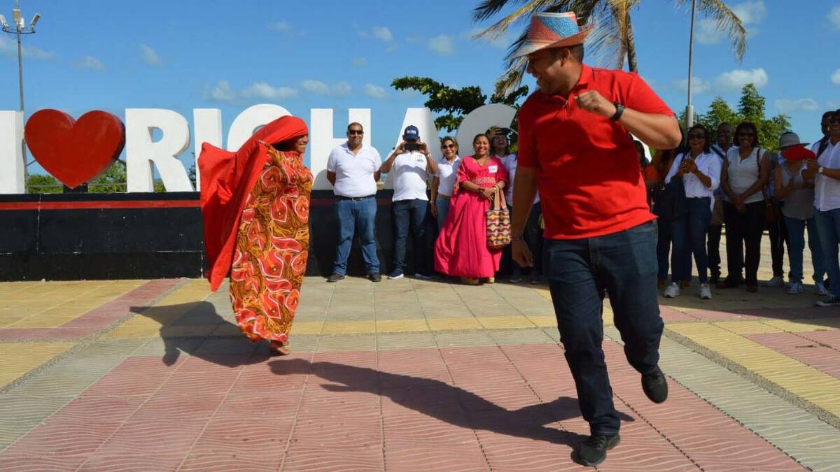 También se atrevió a bailar la tradicional yonna con una joven wayuu para mostrar los visitantes parte de la cultura de esta etnia.