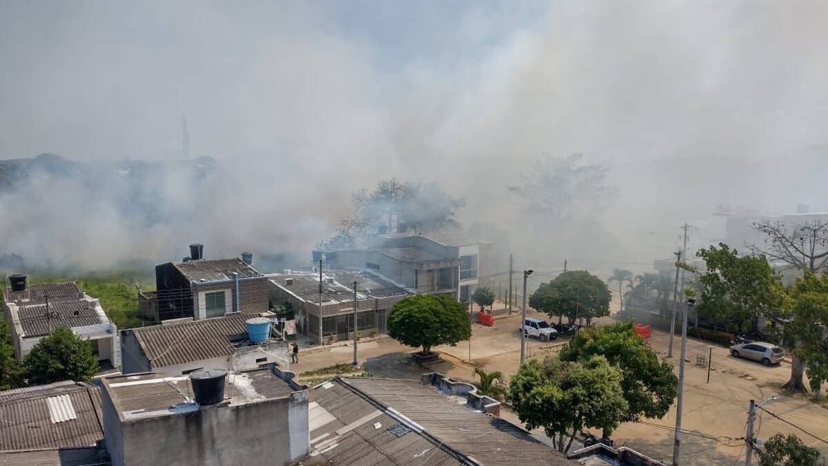 Un incendio forestal de grandes magnitudes se registra en el inicio de la tarde de este miércoles en el barrio Tacaloa, en Sincelejo.