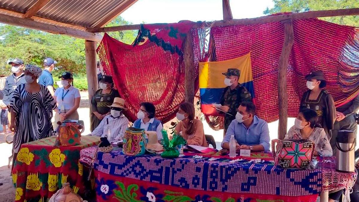 Este sábado la Vicepresidenta al llegar al territorio guajiro lo primero que hizo fue desplazarse hasta la comunidad Tútchon, donde conoció sobre terreno en que consiste la estrategia del PNUD. La decisión de la vicepresidenta Marta Lucía Ramírez, fue inmediata y se unió a la firma del convenio.