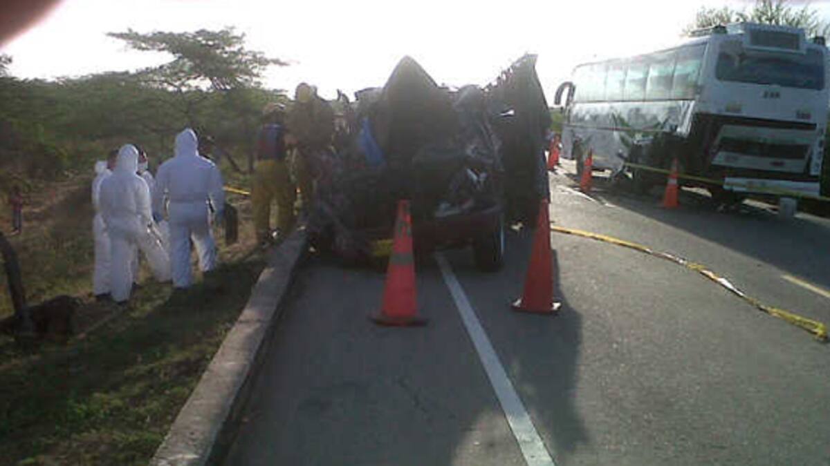Tres hombres muertos y dos más con graves heridas dejó un accidente de tránsito ocurrido a las 4:30 de la madrugada de este martes en la carretera que comunica a Riohacha con Maicao, cuando uno de los vehículos se estrelló con otro que estaba varado en la carretera.