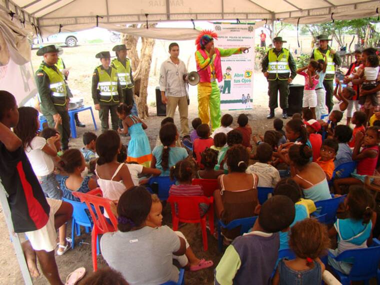 El evento se llevó a cabo esta mañana en el albergue ubicado en la Vía oriental en el corregimiento de Puerto Giraldo, donde los uniformados llevaron a este número de niños la alegría con la participación de payasos, juegos inflables, la entrega de refrigerios y los 500 Kits Didácticos y Escolares, gestionados por la institución.